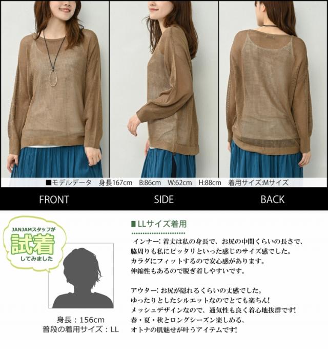 大きいサイズ レディース アンサンブル メッシュニット 長袖 キャミソール 2点セット トップス M/LL/3L/4L/5L ゆったりサイズ ぽっちゃり女子 プラスサイズ