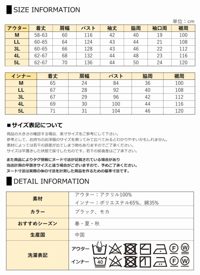 5L:着丈62-67 肩幅70 B136 袖丈44 裾周120