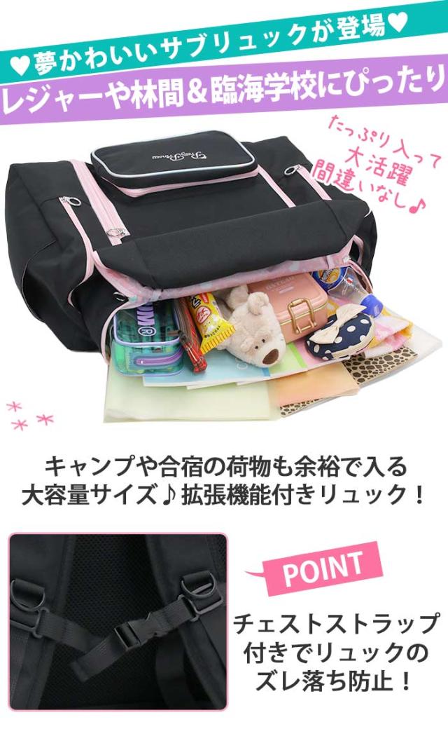プリティプリンセス リュック Pretty Princessサブリュック レディース 大容量 リュックサック デイパック バッグ 大型バッグ ブラック 黒 学生 女の子 子供 人気 おしゃれ かわいい スポーツ 部活 クラブ 小学生 中学生 修学旅行 合宿 遠征 アウトドア PP04