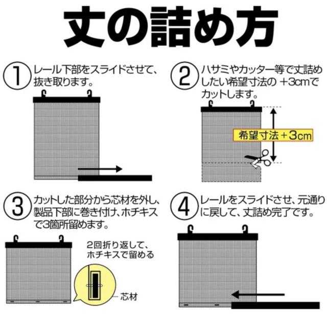 ●カットして寸詰めできますので、丈の調節が簡単です。