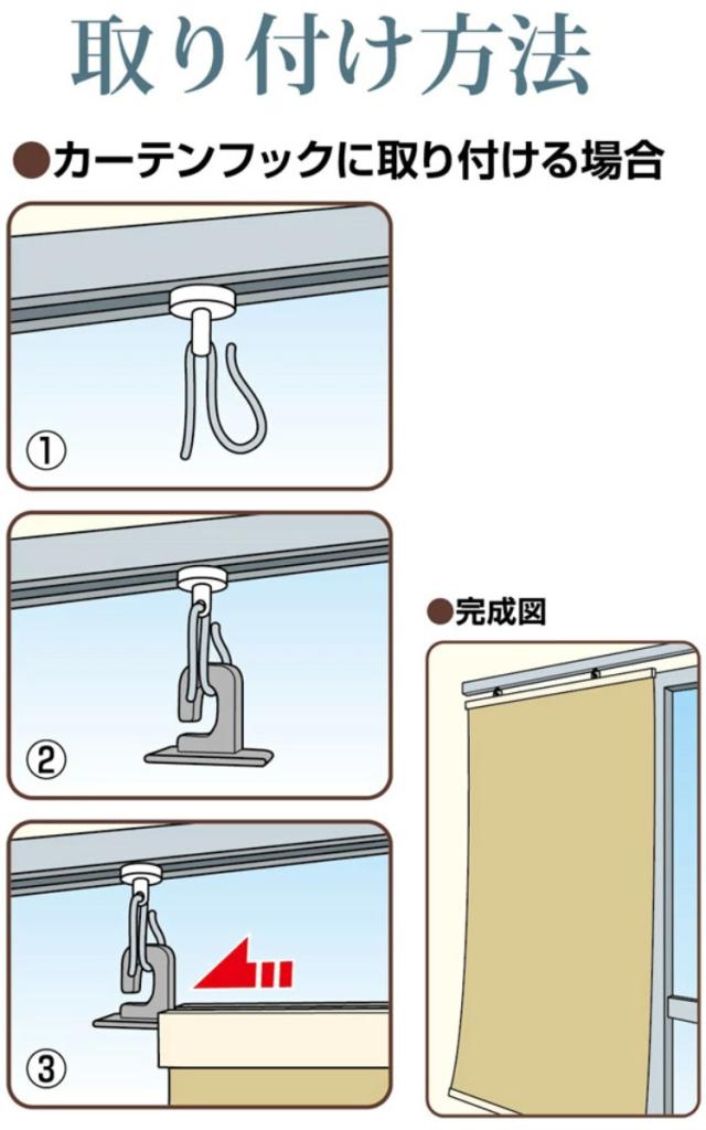 | 材質 | 表面:塩化ビニル樹脂 裏面:ポリエステル レール:塩化ビニル樹脂 フック:ポリプロピレン |