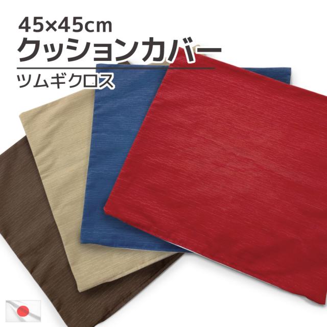 クッションカバー ツムギクロス 45×45cm コットン 日本製 和モダン 替えカバー 座布団カバー 45角 角型 四角 背当 交換用 洗い替え用 無地 単色 シンプル ナチュラル おしゃれ 織り模様 織り柄 インテリア 和室 和風 洋室 さらさら 春 夏 国産