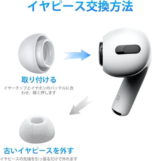 【互換性】AirPods Proのノイズキャンセリング性能を最大限に引き出すためにも、適正なサイズのイヤーピースを装着する必要のため、RIYO AirPods Pro イヤーピースは6ペア (S/M/Lサイズ各2ペア)を用意する。イヤーチップはAirPods Pro充電ケースに完全にフィットします。イヤーチップ付きのまま充電ケースに入れても本体の充電や赤外線検知には妨げない