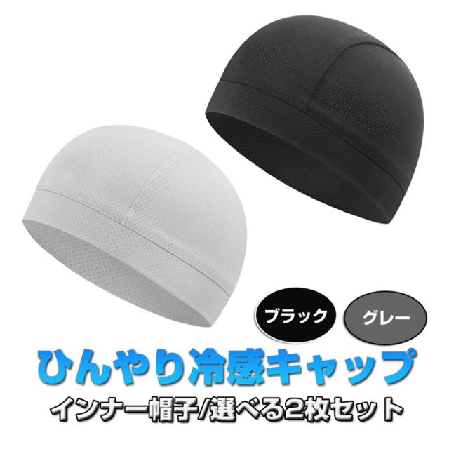 冷感ヘッドキャップ 2枚セット 吸汗 速乾 冷感 通気性 メッシュ ヘルメットインナー キャップ 薄型 軽量 QRU68S2