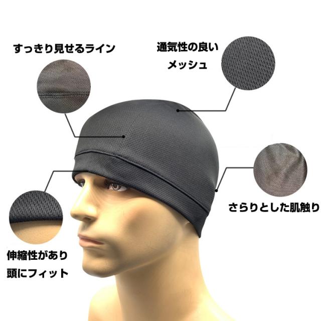 インナーキャップは、汗が垂れたり髪型が乱れたりするのを防いでくれ、吸汗性や速乾性に優れており、ヘルメットなどを衛生的に着用できます。