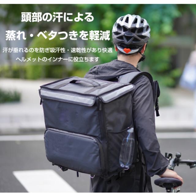 ツーリングやサイクリング、屋外作業、キャンプや釣りや登山、スポーツ、フードデリバーなど、着用の安全ヘルメットや帽子のインナーキャップとしてオススメです。
