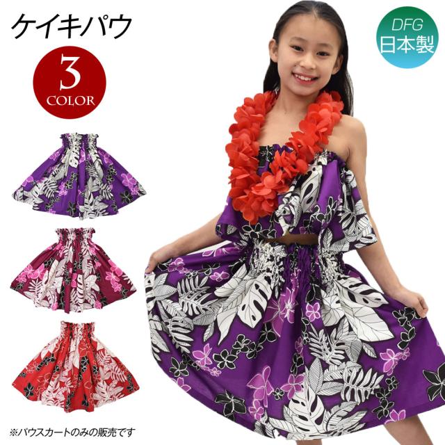 フラダンス衣装 ケイキ パウスカート キッズ 子ども フラ衣装 R32M13[M便 4/3] フラ パウ フラスカート フラダンススカート ハワイ ハワイアン スカート かわいい/キッズ-ジュニア/シングル/綿混/3本ゴム/パープル/ワインレッド/レッド 55cm丈