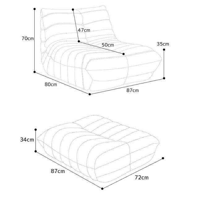 オットマン:幅87cm*奥行き72cm*高さ34cm