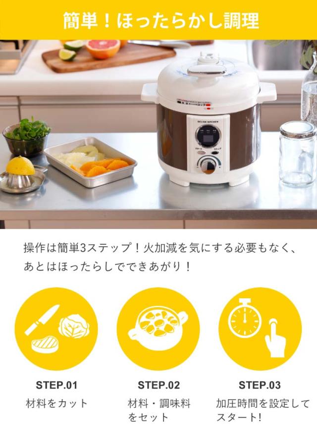 【デリッシュキッチン*リブセトラ 電気圧力鍋 スピードクック ブラウン LPC-T1201/Tの商品詳細】