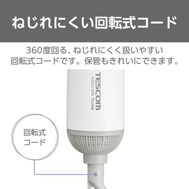 ●360度回る、ねじれにくく扱いやすい回転式コードです。保管もきれいにできます。
