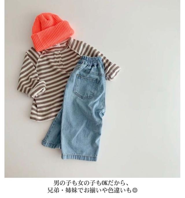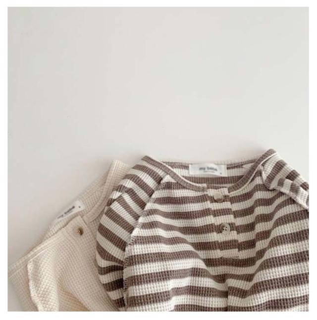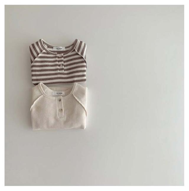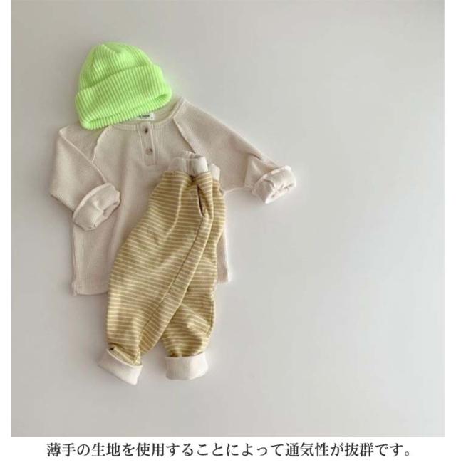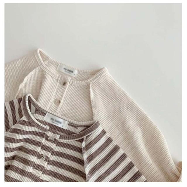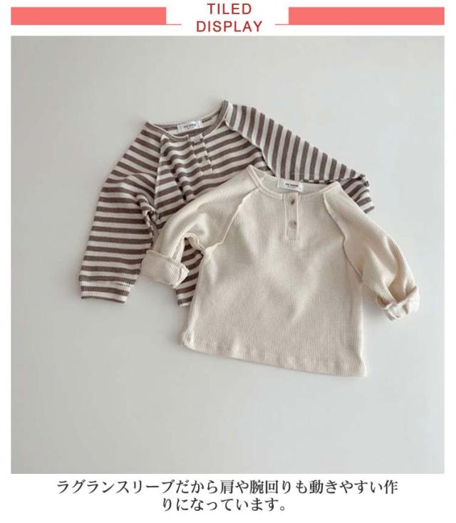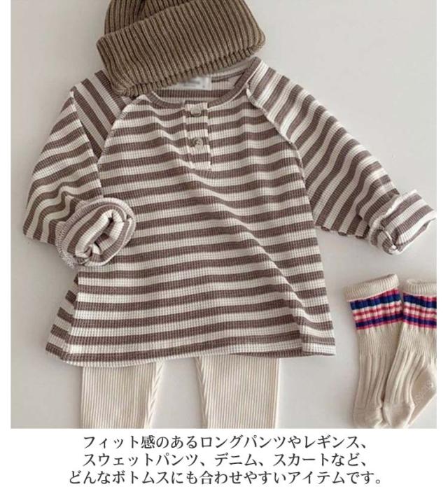 子供服 長袖Tシャツ カットソー ベビートップス ボーダー柄 ワッフル シンプル 送料無料 春秋 男の子 女の子 可愛い 丸襟 赤ちゃん 韓国子供服 合わせやすい 66 73 80 90