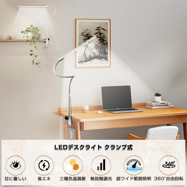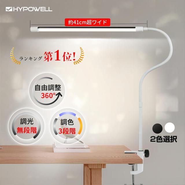 HYPOWELL デスクライト LED電気スタンド アームライト クランプライト 学習机 クリップライト 目に優しい おしゃれ 読書灯 無段階調光 3段階調色 平面発光 360度回転アーム 省エネ 台灯 勉強 机 ライト ライトすたんど usb 卓上ライト