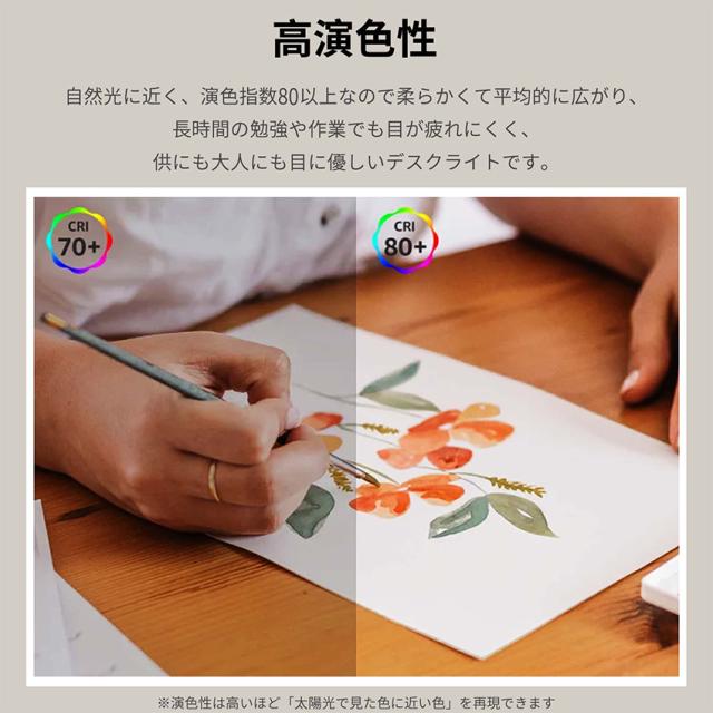 デスクライトのLEDパネルは平面発光技術が採用され、光は均等に照らします。スタンドライトの光は光物に直接当てられなく、柔らかくて 穏やかな光を届けます。光をワイドに広がって、ダブルイメージ/ストロボ/グレアなど目に悪いことを防ぎ,目の疲れを和らげ、長時間の仕事、読書や勉強時でも目にやさしい最適な卓上ライトです。