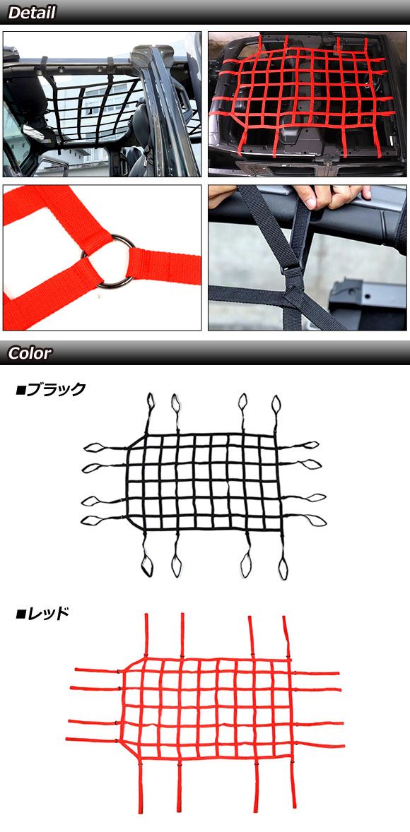 ルーフカーゴネット ジープ ラングラー JL20L/JL36L 2018年11月〜 レッド ウェビング素材/ABS製 4ドア用 AP-AS825-C-RD