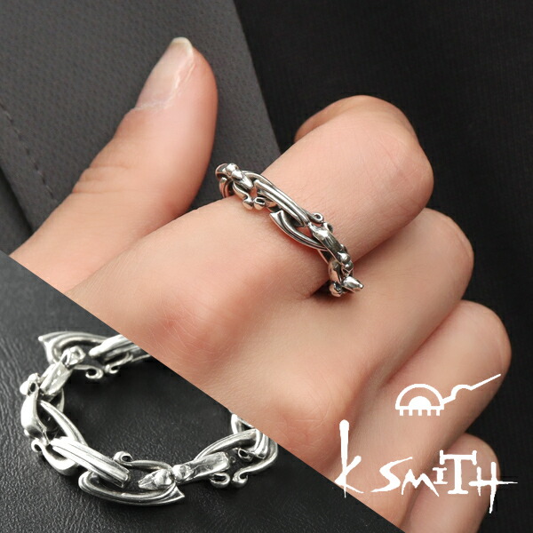 K-SMITH デザイン チェーン リング 12〜20号 シルバーアクセサリー シルバー925 シルバーリング チェーンリング アンティーク かっこいい ゴツめ