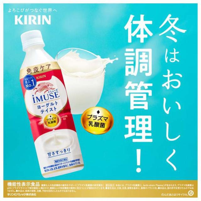 ●「キリン イミューズ ヨーグルトテイスト」はプラズマ乳酸菌の働きで、健康な人の免疫機能の維持をサポート。