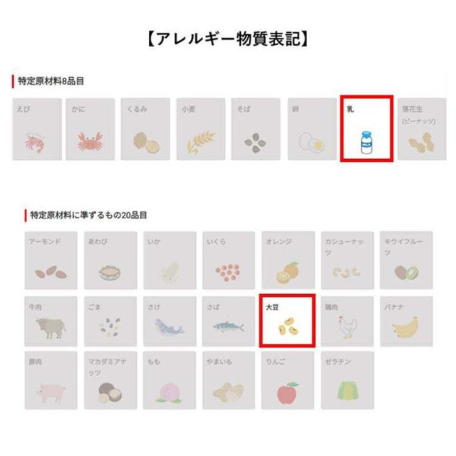 | 砂糖類(果糖ぶどう糖液糖(国内製造)、砂糖)、脱脂粉乳、乳酸菌末/酸味料、香料、安定剤(大豆多糖類) |