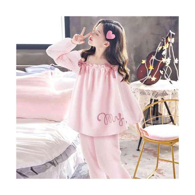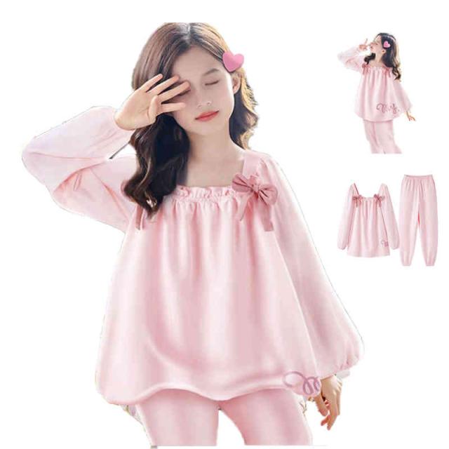 パジャマ 女の子 春秋 リボンパジャマ 長袖 おしゃれパジャマ キッズ ルームパジャマ フリルパジャマ シンプル カジュアル ルームウェア パジャマ おしゃれ 部屋着 寝巻き