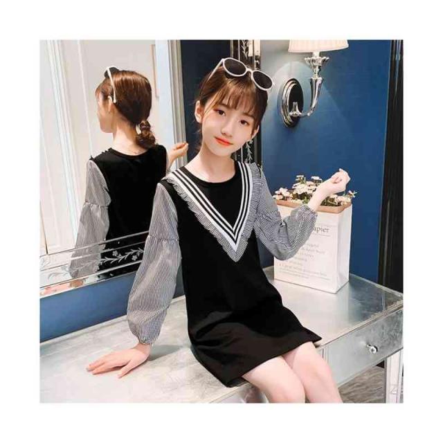 送料無料 ワンピース 丸襟 学院風ワンピース 長袖 おしゃれワンピース 春秋 ロングワンピース 学院風ワンピース 学生 シンプル カジュアル おしゃれ 子供服 ワンピース 子供ワンピース おでかけ キッズ