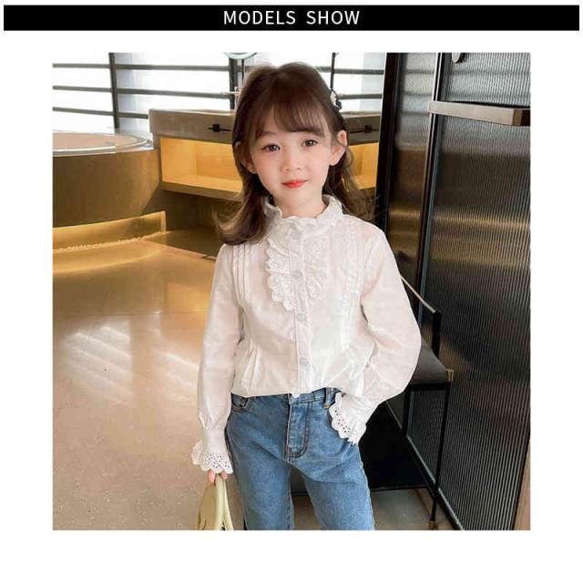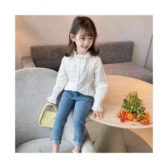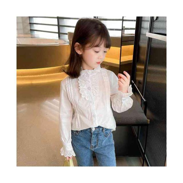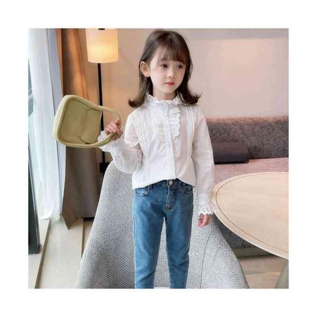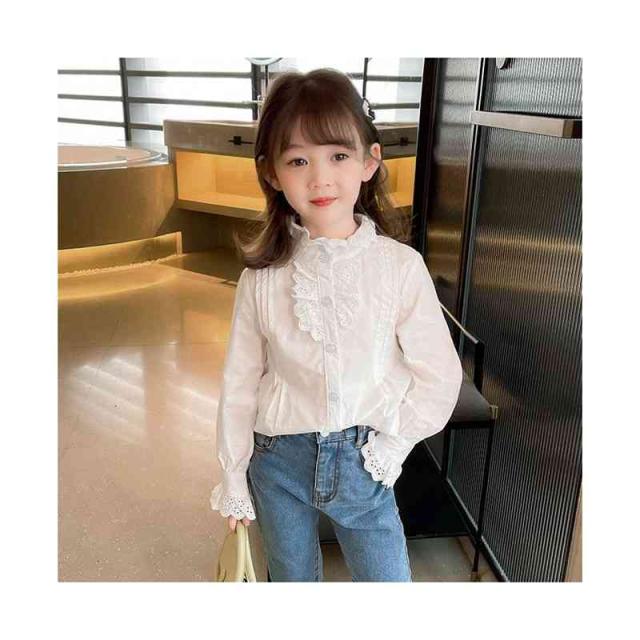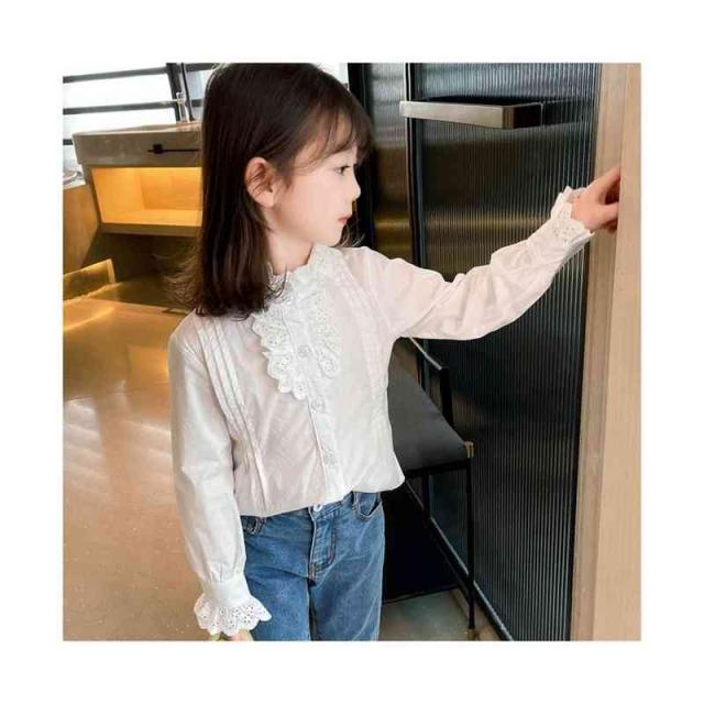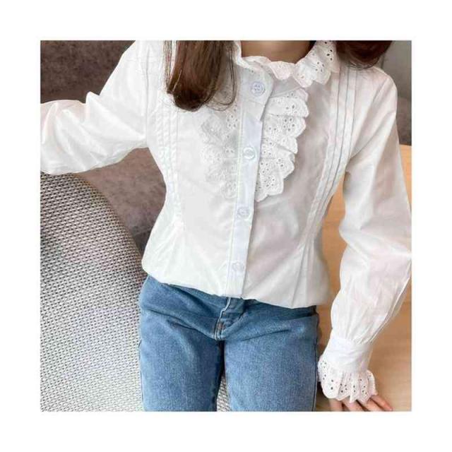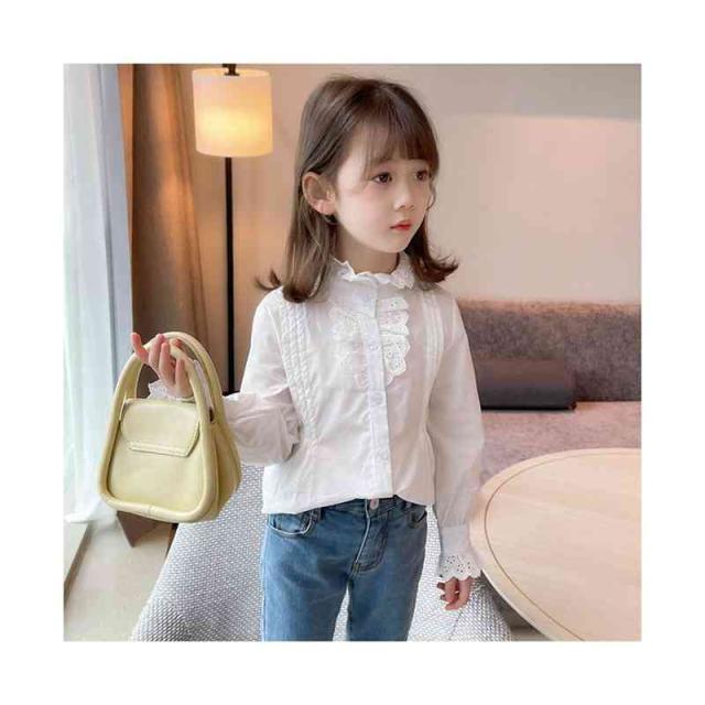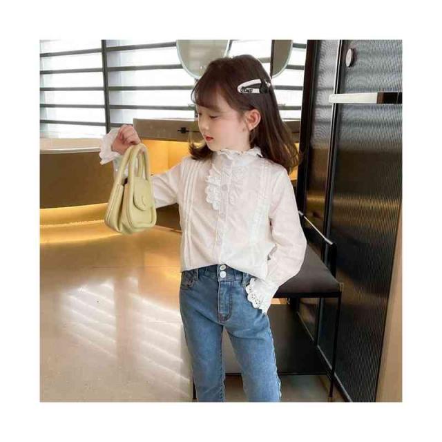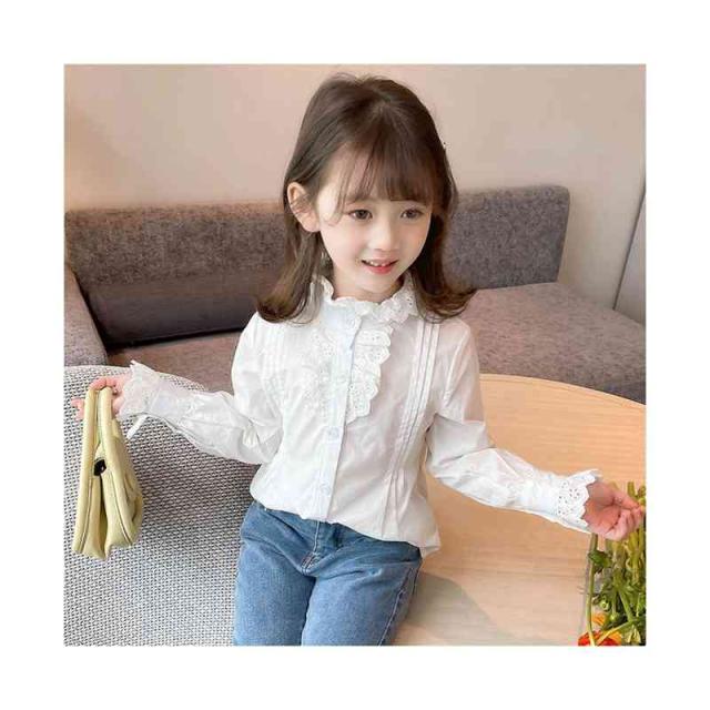 フリルブラウス ジュニア 無地 フリル かわいい インナーブラウス ショートブラウス 子供ブラウス トップス ブラウス 春秋 可愛い 長袖 シンプル おしゃれブラウス おしゃれ 女の子 女児 インナーウエア 子供服 キッズ