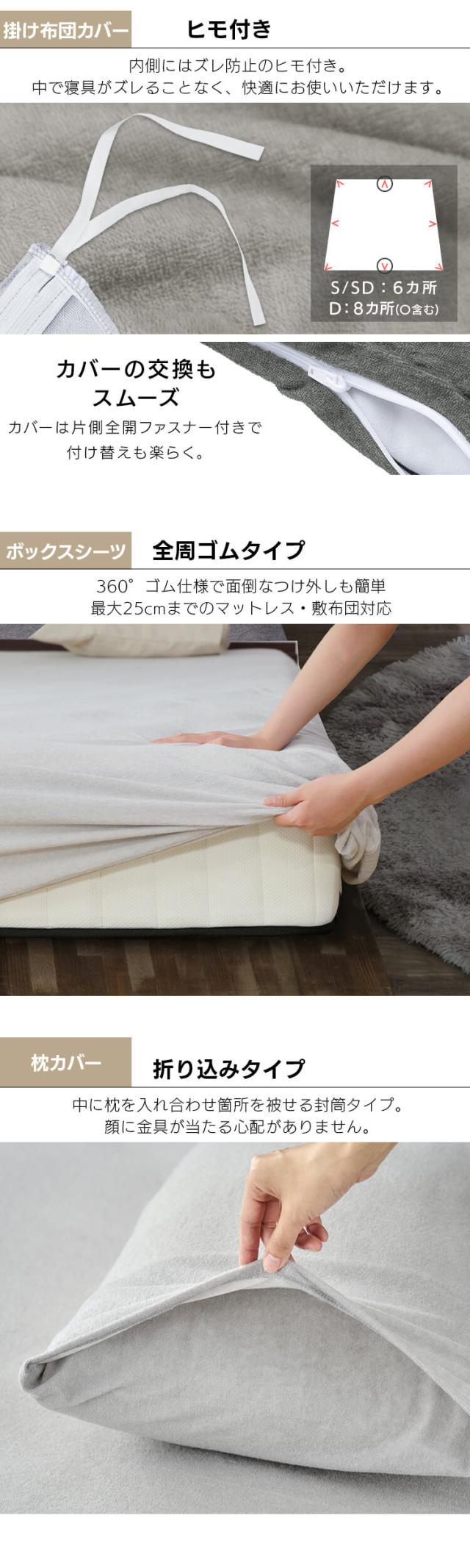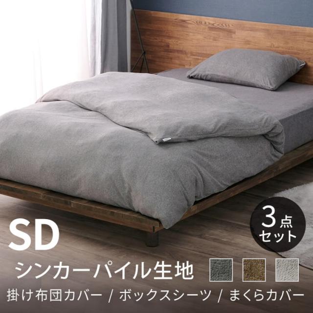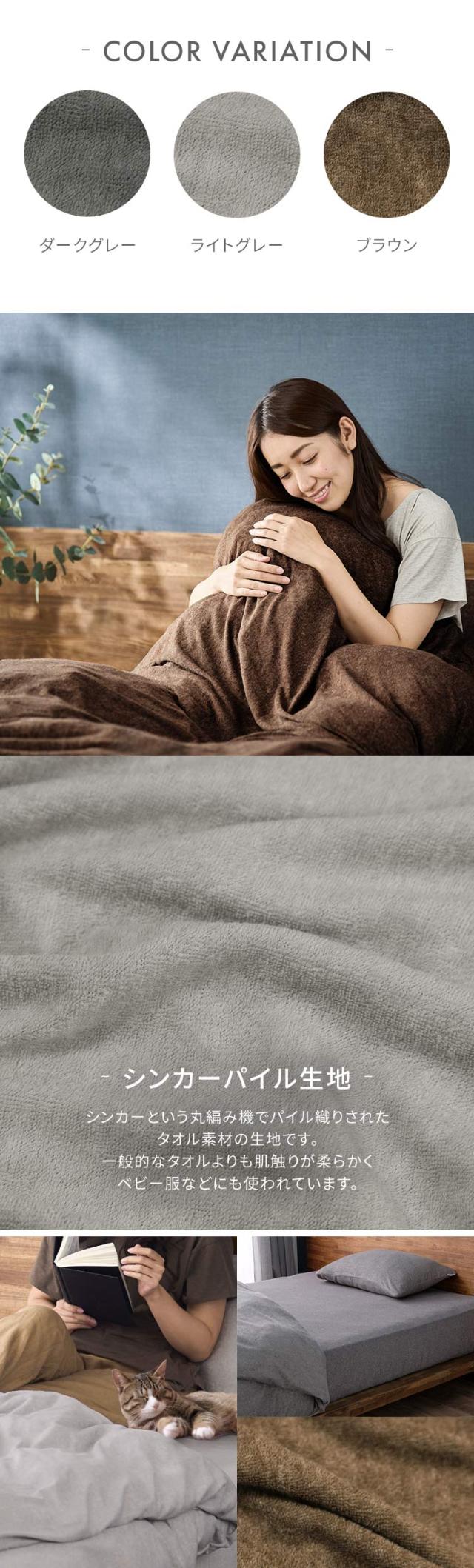 パイル3点セット セミダブル ダークグレー ブラウン ライトグレー 枕カバー 小さめ ふつう