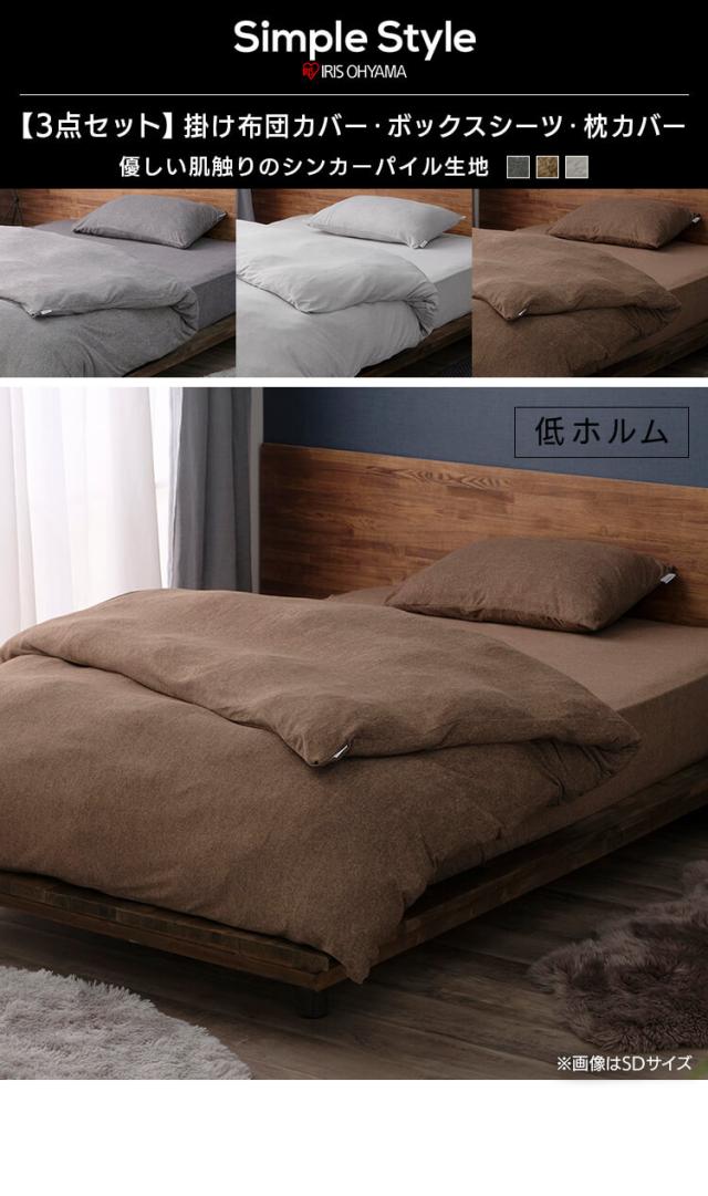 掛け布団カバーとボックスシーツ、枕カバーセットです。