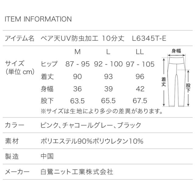 10分丈 インナー レディース 春夏 UVカット 通気性 アンダーウェア ボトムス ストレッチ カジュアル スポーツ 防虫 女性 婦人 下着 肌着 L6345T-E
