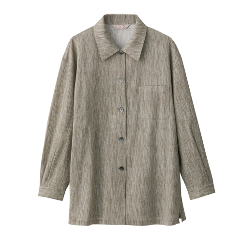 シャツ ブラウス 和素材 レディース 長袖 日本製 高島ちぢみ ブラウスジャケット 全2色 ブルー ベージュ 婦人服 ミセス シニア 女性 青 薄茶色 シンプル シニアファッション 40代 50代 60代 70代 80代 母の日 お母さん おばあちゃん 縮 春物 夏物 春夏 fuji p24108