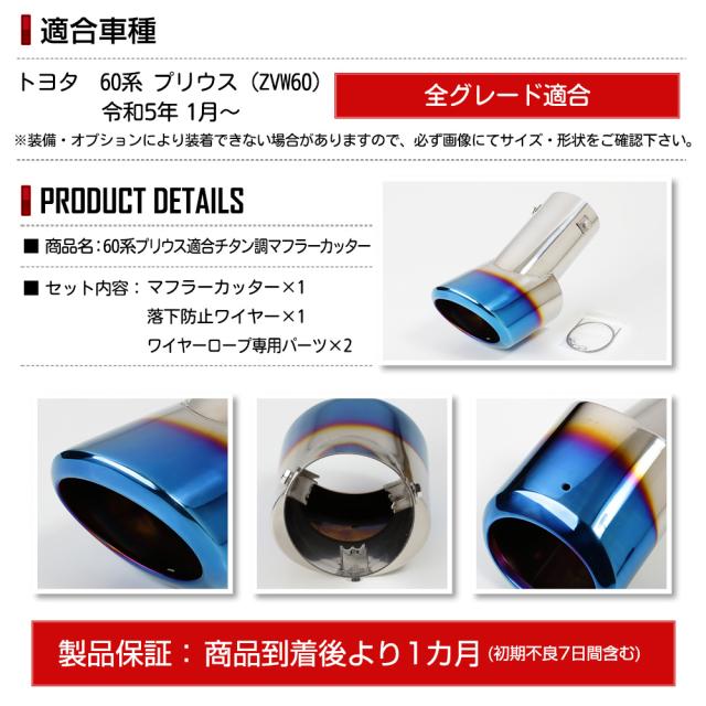 60系プリウス 適合 チタン調 マフラーカッター 1PCS PRIUS 落下防止付 メッキ カスタム パーツ アクセサリー ドレスアップ トヨタ TOYOTA