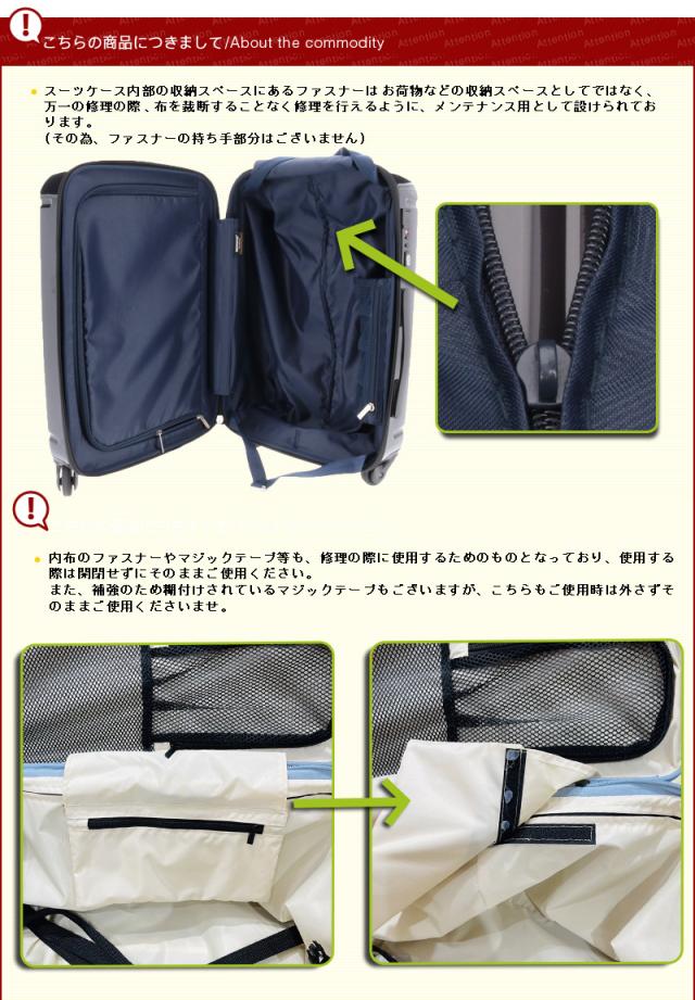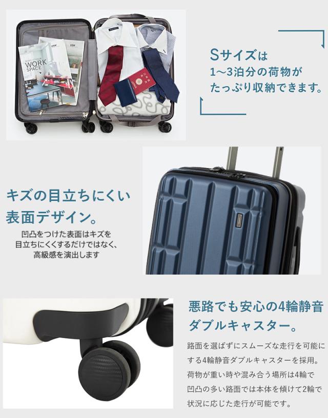 | 備考 | ■1〜3泊 ( Sサイズ ) ■機内持ち込み可能 ■無料受託手荷物対応 ■TSAロック対応 ■キャリーバー3段階調整可能 ■1年保証 ■キャスター交換可能 ■静音キャスター ■底面ハンドル採用 ■エキスパンダブル仕様 ■荷崩れ防止のクロスバンド 関連キーワード: 機内持込 機内持ち込みサイズ キャスターが外せる キャスター取り替え可能 タイヤが外せる タイヤ取り替え可能 走行音が静か TTRR*01001 旅行鞄 旅行バッグ 機内持込み 小型 LCC 軽量 大容量 30L 40L 容量拡張 黒色 白色 青色 紺色 かわいい 可愛い おしゃれ お洒落 かっこいい おすすめ オススメ シンプル 高級 ブランド ハードケース ハードタイプ ファスナータイプ ジッパータイプ 4輪ダブルキャスター フロントポケット フロントオープン PC収納 ノートPC ノートパソコン タブレット収納 旅行 修学旅行 国内旅行 海外旅行 ビジネス 出張 メンズ 男性 彼氏 レディース 女性 妻 プレゼント ギフト マツコの知らない世界 TV テレビ マツコニューバッグワカマツ | ||