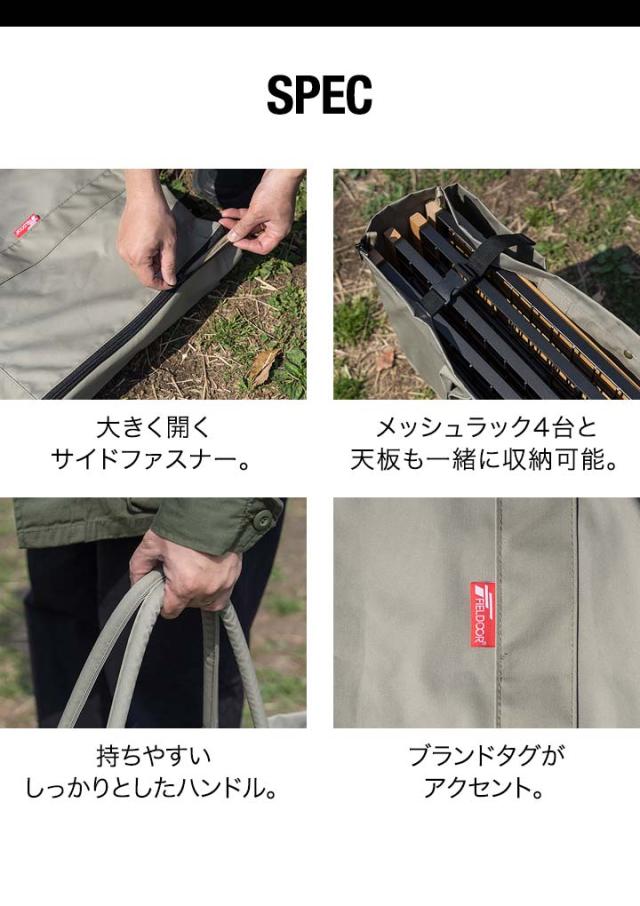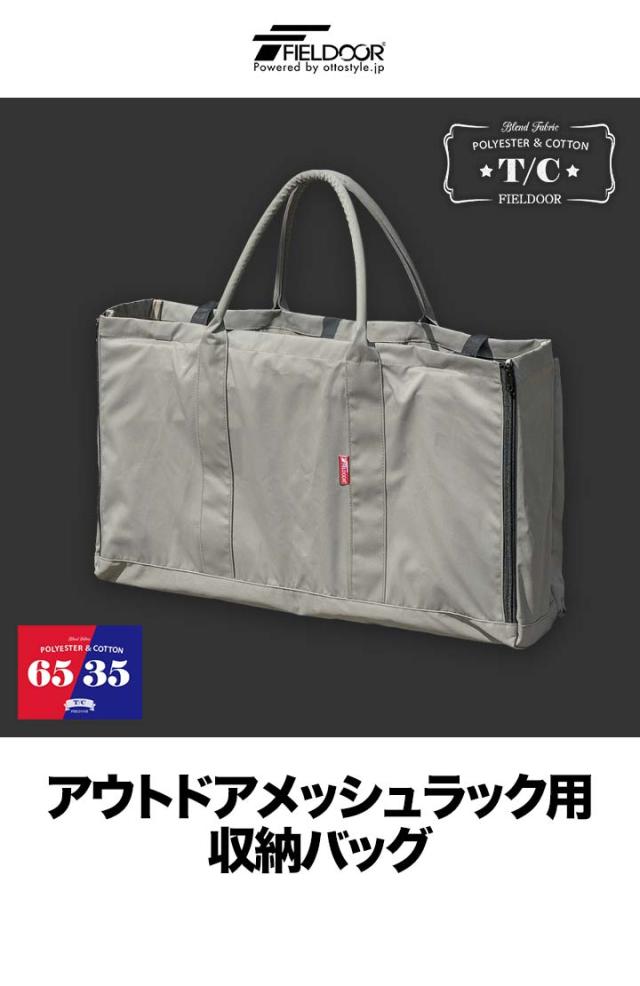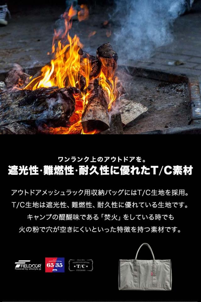 FIELDOOR アウトドアメッシュラック用 収納バッグ 66cm×37.5cm×マチ12cm 難燃 T/C 丈夫 ポリコットン カーキ ケース トートバッグ 大型 長方形 キャンプバッグ 収納袋 キャリーバッグ 大きい アウトドア アクセサリー収納 1年保証 送料無料