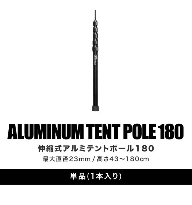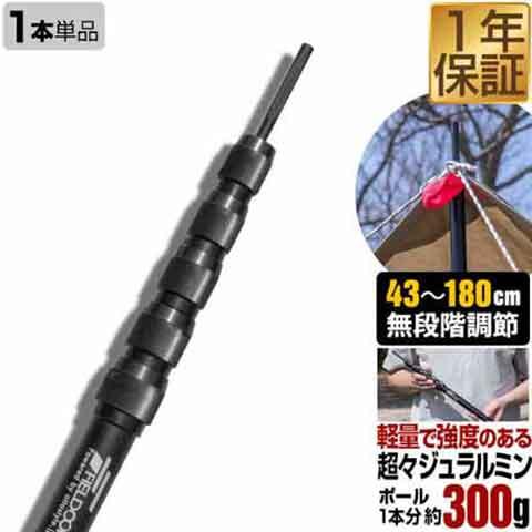 FIELDOOR テントポール 軽量 ジュラルミン製 1本単品 直径23mm スライド伸縮 高さ43〜180cm 無段階 高さ調整 簡単 アルミ ポール コンパクト テント キャンプ タープテント タープポール ソロキャンプ 伸縮 アルミテントポール 1年保証 送料無料