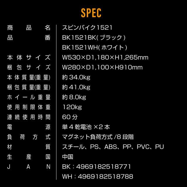 | 型番 | BK1521BK(ブラック)/BK1521WH(ホワイト) |