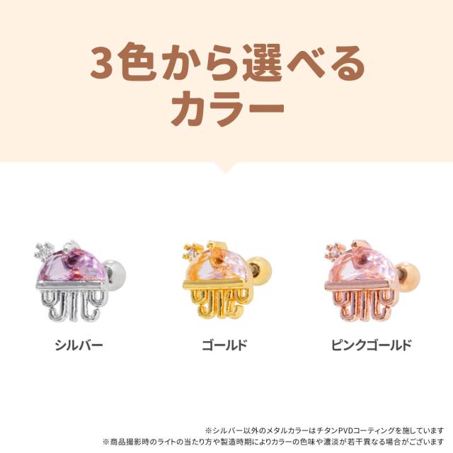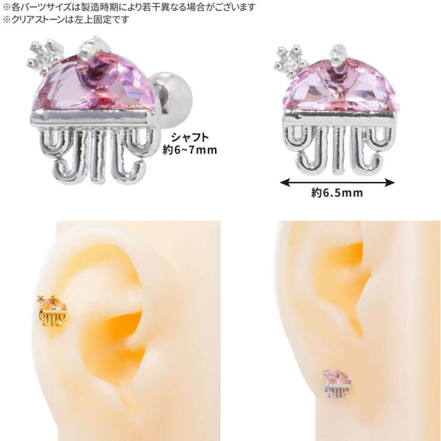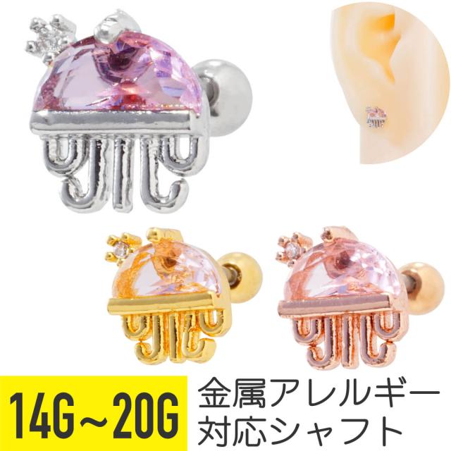 ピンク ストーン クラゲ ストレートバーベル 14G 16G 18G 20G サージカルステンレス ジュエル ヘリックス 軟骨ピアス ボディピアス