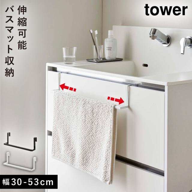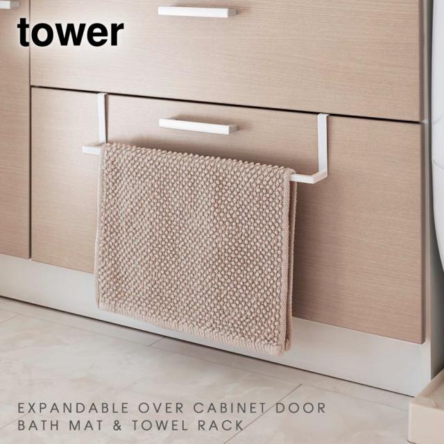 バスマット タオルハンガー 伸縮 tower 山崎実業 洗面 キッチン 玄関 リビング 収納 洗面下引っ掛け伸縮バスマット&タオルハンガー タワー
