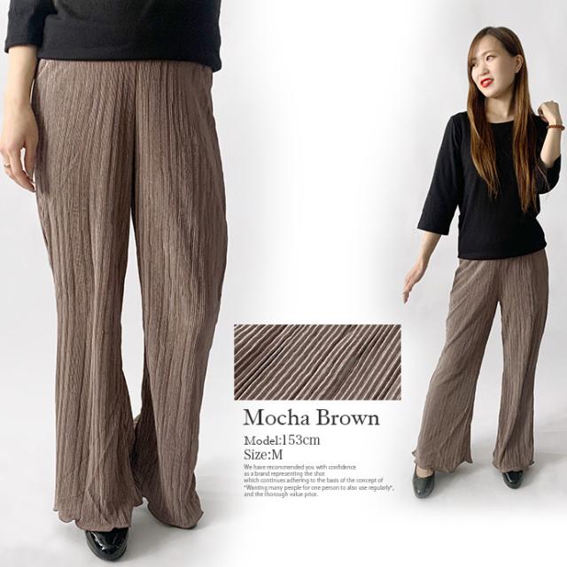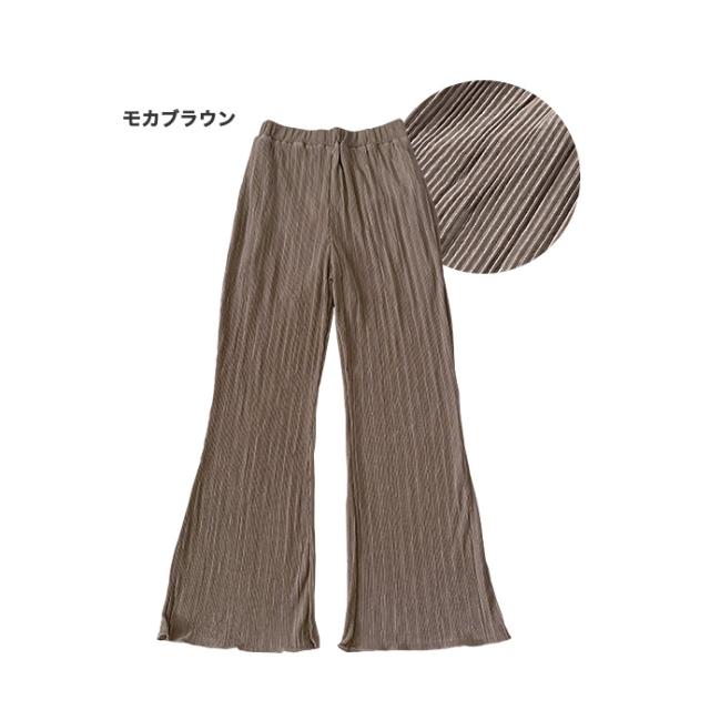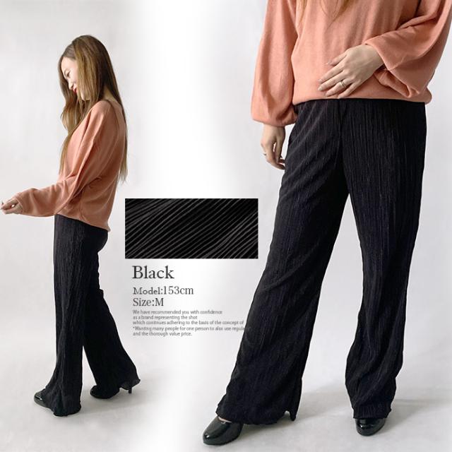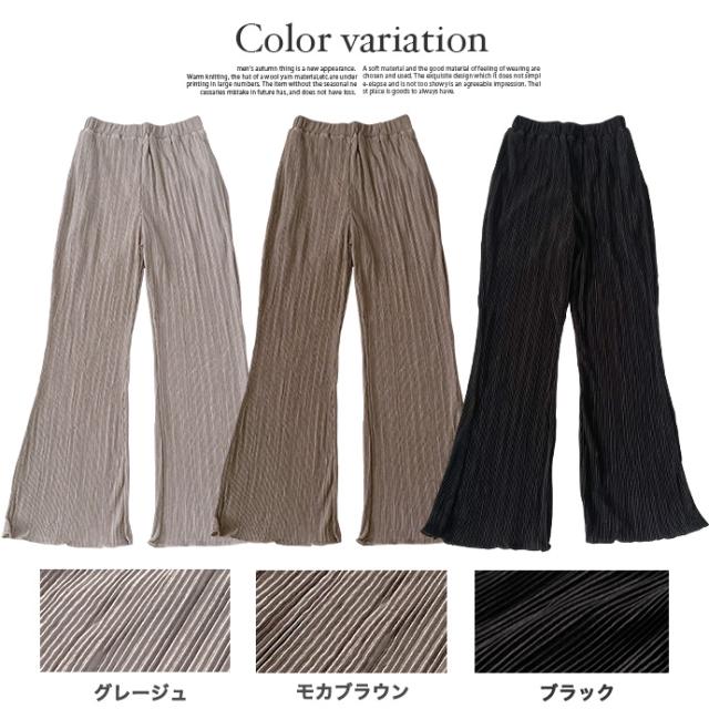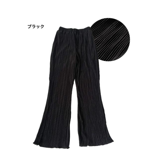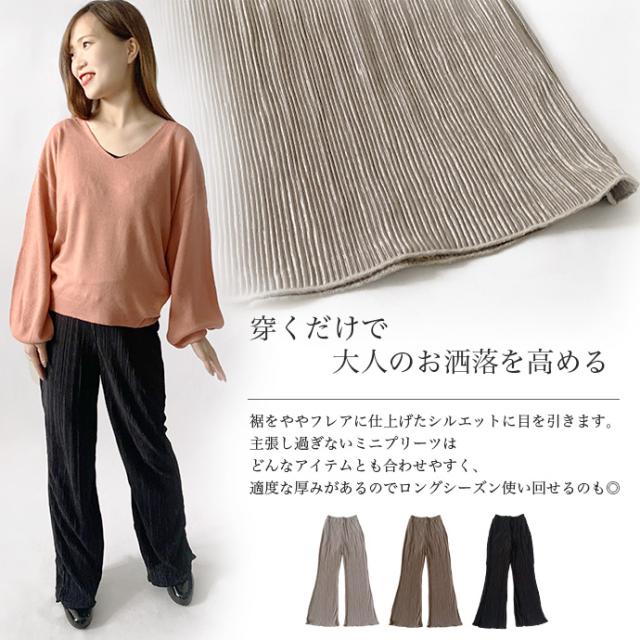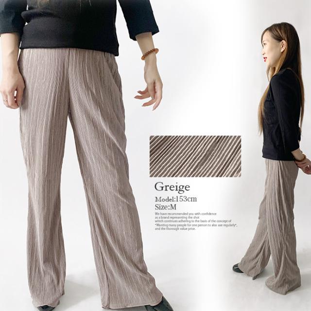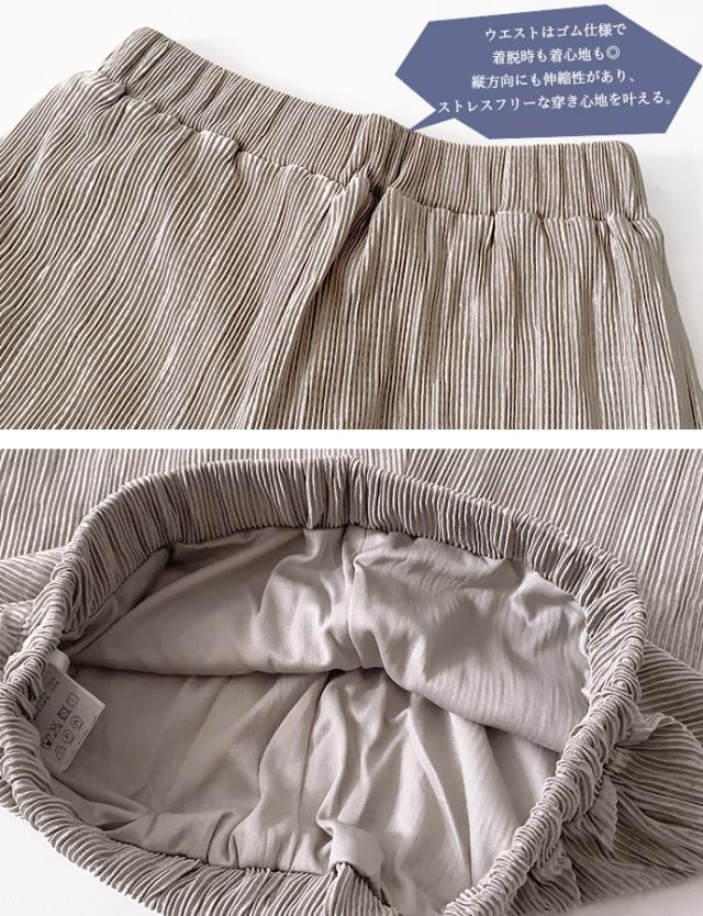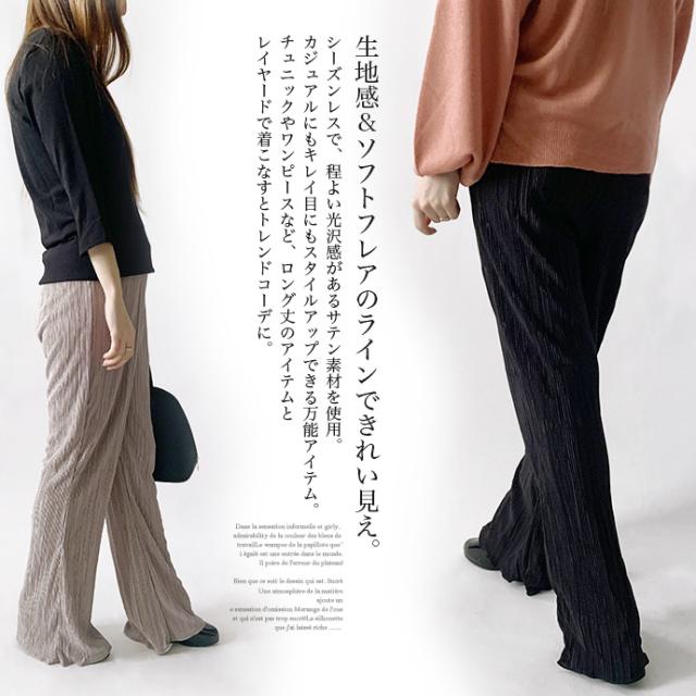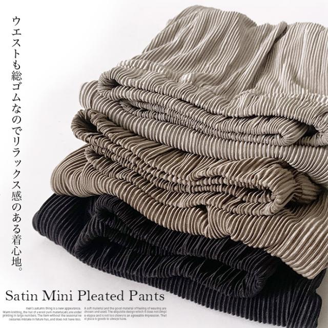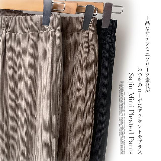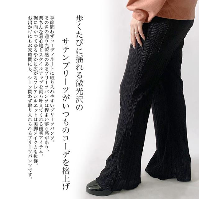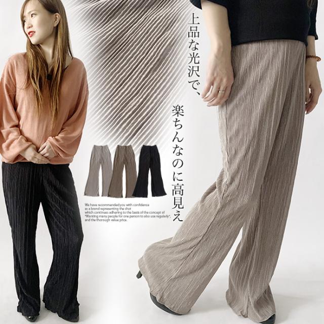 プリーツパンツ イージーパンツ ワイドパンツ ロングパンツ ボトムス パンツ ズボン ロング丈パンツ プリーツ ウエストゴム 総ゴム サテン生地 光沢感 体型カバー 楽チン 送料無料