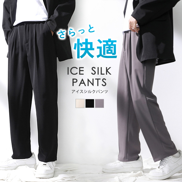 パンツ アイスシルク メンズ ボトムス タック 冷感 速乾 ひんやり 快適 無地 スポーツ カジュアル きれいめ シンプル 9分丈 ロング 春 夏 秋 送料無料