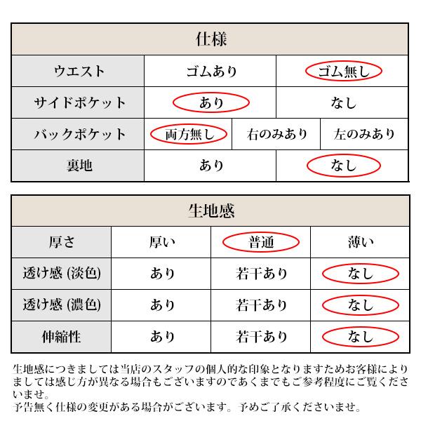 Lサイズ:着丈90/ウエスト76/ヒップ104/ワタリ38.5(cm)