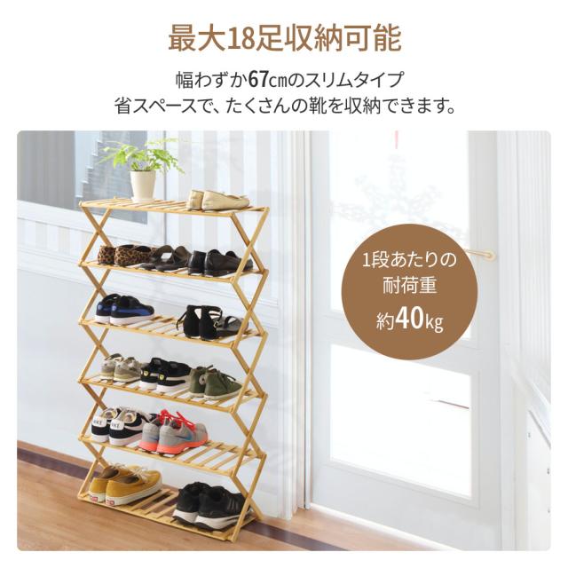 シューズラック スリム 省スペース スリッパラック スリムシューズラック 最大18足 6段 幅63cm コンパクト 靴 スリッパ