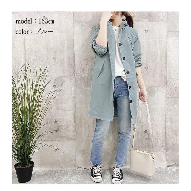 - 薄手コートですが、コスト削減らしく圧縮包装で届いたので、薄めた衣類リンスをシワにスプレーして、スチームアイロンしました。けっこうシワがとれます。ホントに薄手で羽織る感じですがウエストも絞れるし結構着られそうです。迷ってブラックにしましたが、ブルーも興味あります。再購入迷ってます。