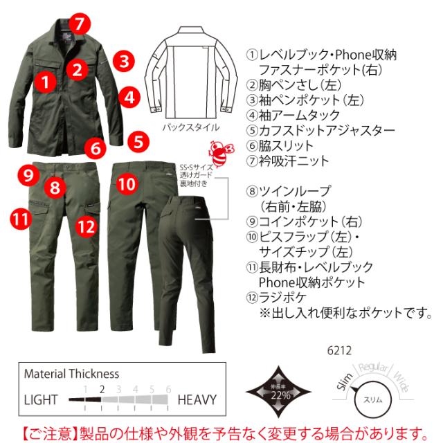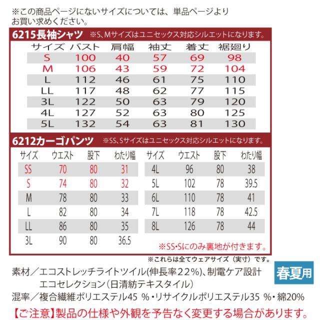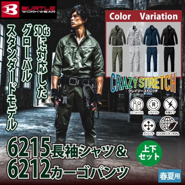 バートル BURTLE 作業服 作業着 上下セット 6215 長袖シャツS-3L と 6212 カーゴパンツ SS-3L