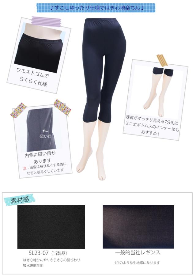 夏向けレギンス 7分丈 レディース 涼しいはき心地 メール便1足まで 夏さらさらレギンス 紫外線対策 大きいサイズ 3L すこしゆったり レディース レギンス LegStyle レガルト