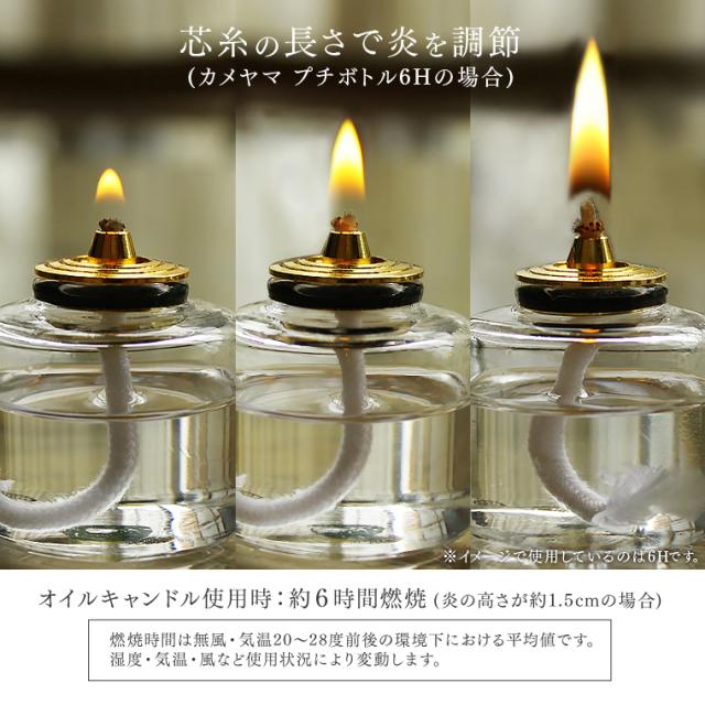 | ご使用上の注意 | ●水平な状態で使用してください。 ●火を灯したら絶対にそばを離れないでください。 ●燃えやすいものが近くにない、安全な場所で使用してください。 ●燃焼中および燃焼直後は本体が熱くなるので手を触れないでください。 ●閉ざされた空間で使用の際は必ず換気してください。 ●就寝の際には消火してください。 ●小児やペットのそばでの燃焼、保管はしないでください。 ●ガラスが割れることがあるので、取り扱いには十分注意してください。 |