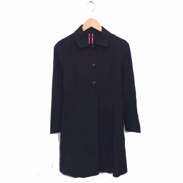 【中古】エフデ ef-de スプリング ステンカラー コート アウター ロング ウエストリボン 7 ブラック 黒 /TT6