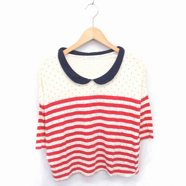 【中古】ビュルデサボン カットソー Tシャツ ラウンドカラー ボーダー ドット 七分袖 F アイボリー レッド 赤 /TT1