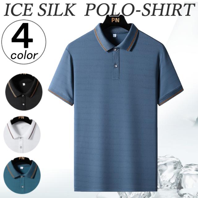 メンズ 男性用 半袖シャツ アイスシルク 接触冷感 Tシャツ ポロシャツ さらり 運動用 無地 カジュアル シンプル