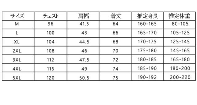 | 【サイズ】 | M、L、XL(LL)、2XL(3L)、3XL(4L)、4XL(5L)、5XL(6L) |