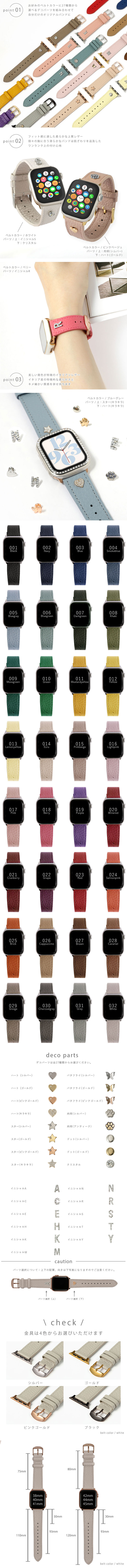applewatch替えベルト(ベーシック(アドリア)カシメデザイン)