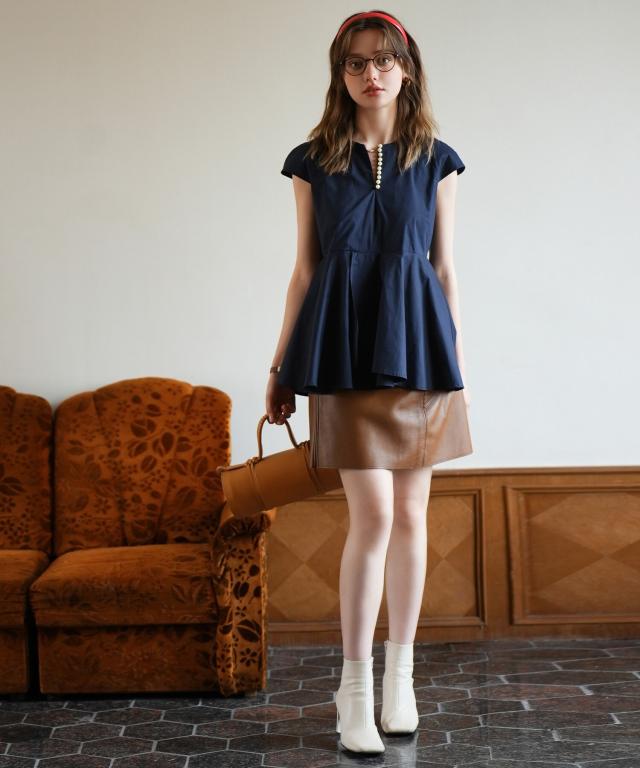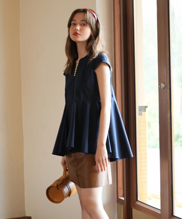 重心が下に集まるペプラムデザインを軽やかに見せてくれる涼しげなフレンチスリーブ。二の腕をすっきり見せることでヘルシーな印象にも◎