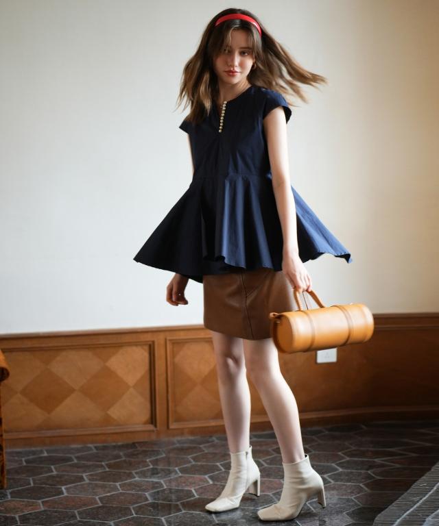 きれいめなペプラムトップスなので、デニムやショートパンツなどのカジュアルなボトムスもスラックスやタイトスカート、クロップドパンツなどにも合い、ボトムスを選ばないのも高ポイント。